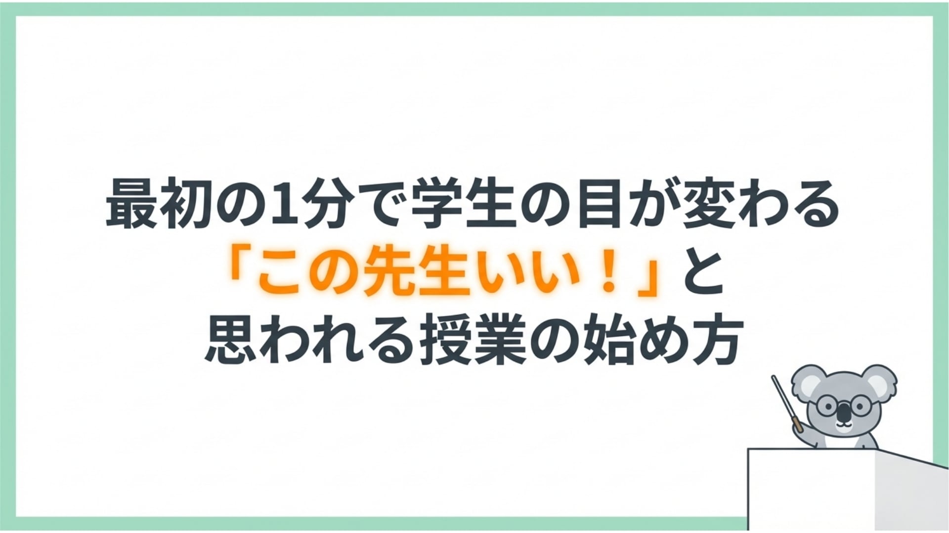 ・最初の1分で学生の目が変わる「この先生いい!」と思われる授業の始め方